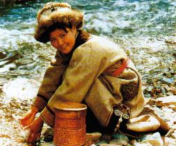 狩猎途中的鄂伦春族男子。鄂伦春族男子穿大襟长袍,长袍下摆有前后左右四个开衩,穿着时紧系麋皮带,下着皮裤皮靴,头戴皮帽。这种装束非常适合于骑马奔跃的狩猎生活。