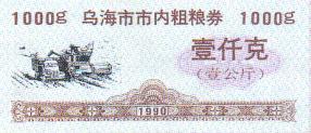 塞上煤都 原为鄂托克、阿拉善2旗地。后改为海勃湾市和乌达市,1975年将两市合并取其首字命名为乌海市。 邮编:014450 区号:0473 人面像岩画—青铜时代,乌海市召烧沟。 太阳神岩画——青铜时代,乌海市召烧沟。 市内粗粮劵(壹仟克 1990年)