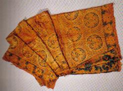 双羊纹提花织锦被面。元代集宁路古城遗址出土。