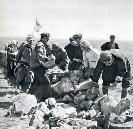 巴音塔拉公社哈尼乌拉大队的牧民,为了建设草原,开山采石。