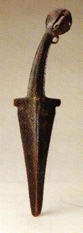 铃首曲柄青铜短剑。夏家店上层文化(见赤峰市的名胜古迹介绍),长22.3厘米。