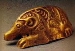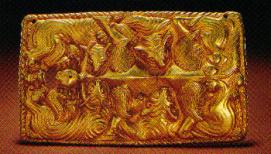战国 金饰件。长4.5厘米,阿鲁柴出土。