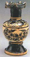 (西夏)褐釉牡丹剔花罐,纳林塔出土。