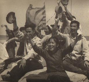 扎鲁特旗“乌兰牧骑”深入夏季牧场为牧民们演出。这是演出完毕后,队员们离开生产队时的情景。(1965年,宝音朝克图摄影)