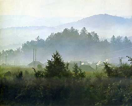 抚松—长白山区的山城之一,桥下便是松花江。(1958年)