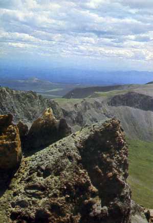 海拔一千八百多米以上的火山锥体部分。这是火山爆发时喷出大量岩浆浆冷却后形成的遗物。
