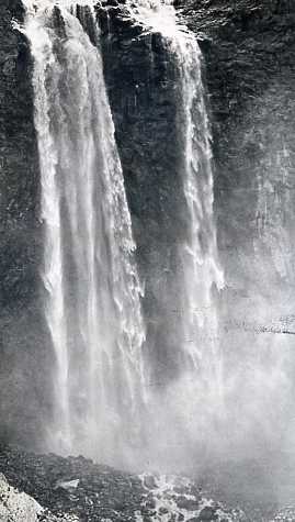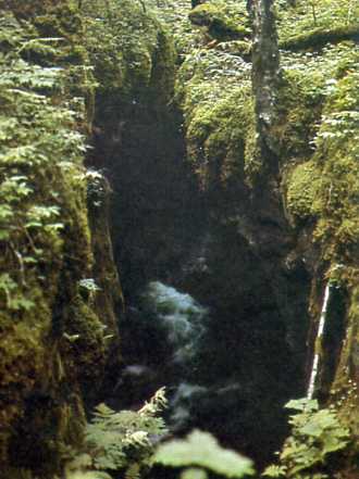 这是火山爆发后形成的岩石裂缝,天池里的湖水经缺口流入深谷,又经此处而注入松花江。