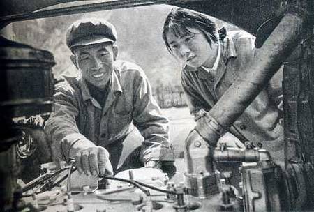 汽车司机刘德志(左)年年超额完成运输任务,是全局的标兵。