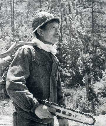 利用赤眼蜂来消灭毛虫,科技人员正松林中观察试验效果。