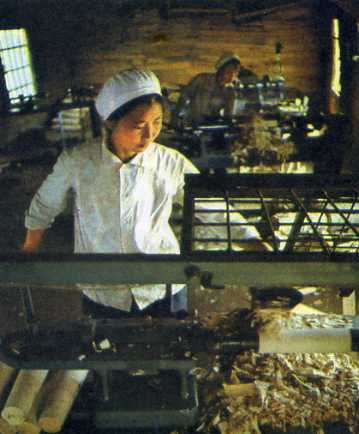 长白山在吉林省,是近代火山群的中心。主峰白头山曾在1597年和1702年喷火,现在山顶有个火口湖,称为“天池”,附近有温泉。山里有遮天蔽日的森林和丰富的矿产,还有人参、貂皮、鹿茸等特产。这里曾经是东北抗日联军根据地之一。现在,这里的森林工业已经实现了机械化,一座座新的林村、学校和工厂也都陆续建立起来。