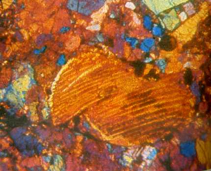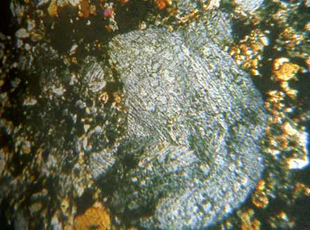 吉林陨石的三张显微照片:重叠的炉条状球粒。