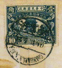 张家湾寄安达实寄封(贴国葬“吉黑贴用”票一枚),1929年。(注:邮票已放大)