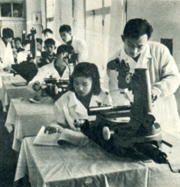 建国十周年前夕,中国科学院光学精密机械仪器研究所制成五种重要光学精密仪器。这是其中的新万能工具显微镜。
