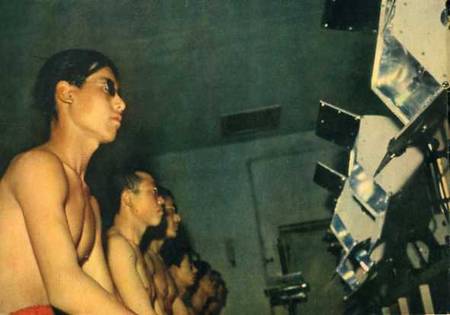 为了保护工人的健康,矿务局设有太阳光灯室,下井的工人每天下班后,到这里照射一次。