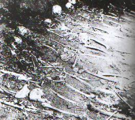 西安煤矿“万人坑”东侧一角。据不完全统计,仅1937年到1941年,西安煤矿死难矿工就达7.4万人,平均每天死亡50多人。东北沦陷14年间,资源丰富的矿山凡经日伪开采过的,都留有大小不等的“万人坑”、“白骨堆”。