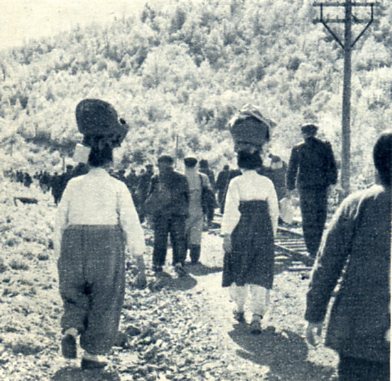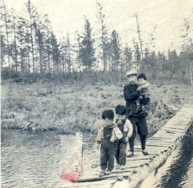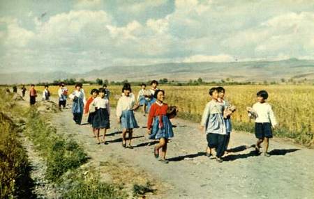 延吉县太兴村的儿童,早晨到学校去上学。