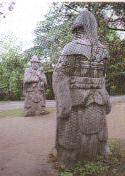 - 在南京市中华门外、雨花路东侧北山门。寺为明成祖以纪念明太祖和马皇后为名兴建,实为纪念他的生母。其生母为高丽(朝鲜)人,生朱棣时末足月,被马皇后折磨而死。全部工程明永乐十年(1412年)六月动工,宣德六年(1431年)八月竣工。有殿宇楼阁20多座,大雄宝殿如同宫殿,辉煌壮丽。殿后建有大报恩寺塔,九层八面。寺塔毁于清咸丰年间(1851-1861),仅存一碑二龟趺。右碑为宣德三年(1428年)所立,现存,通高8.55米,碑身高4.45米、宽1.91米、厚0.62米;碑额高2米、宽2.1米、厚0.82米,篆书“敕建大报国寺志”。