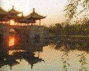 在扬州市西郊。六朝以来,即为风景胜地。因此湖与杭州西湖相比,另有一种清瘦秀丽的特色,故称瘦西湖。它原是纵横交错的河流,历次经营沟通,运用我国造园艺术的特点,因地制宜地建造了很多风景建筑。湖长10余里,犹如一幅山水画卷,既有天然景色,又有扬州独特风格的园林,是国内著名的风景区之一。