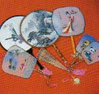 - 产于苏州市,素以“艺、巧、轻、雅”而负盛名。有绢宫扇、折扇、檀香扇等品种。(1)绢宫扇,扇面以绢为主,又称绸扇,扇面呈圆状,又称团扇,因源于汉代宫廷,故又名宫扇。(2)折扇,源于朝鲜,北宋宣和年间始行制作,至明代,声誉卓著。(3)檀香扇为后起之秀,由南洋母女式折扇演化而成。始产于1920年。