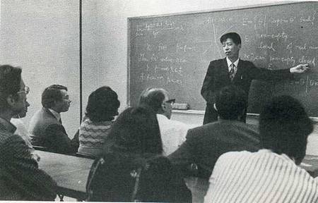 中国数学家应邀参加1978年4月10日至14日在瑞士苏黎世举行的国际分析会议,并先后在瑞士和英国进行学术交流。图为杨乐在伦敦帝国理工学院作关于函数值分布论报告。