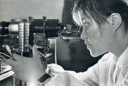 第二电子仪器厂的工人正在测试激光元件。目前这个厂从激光材料、元件到整机都可以生产。