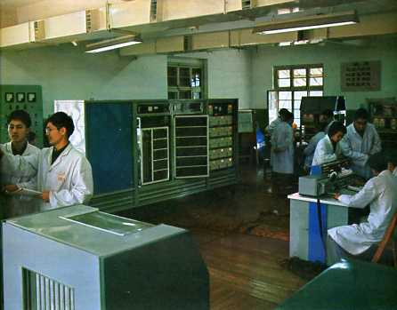 第二无线电厂与南京大学等单位联合设计试制了DJS200/10电子计算机。图为正在进行外围设备与主机联调工作。
