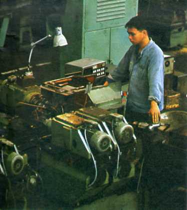 常州柴油机厂的工人正在生产安装小型柴油机。这种柴油机很受农民的欢迎。