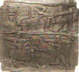 汉墓木刻画。1974年盱眙县东阳汉墓出土。在木椁上雕刻木刻画,在中国其它地方的汉墓中从未发现过。