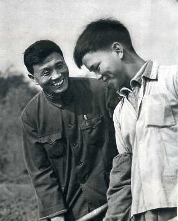 农业学大寨带头人,大队党支部书记吴仁宝(左)。