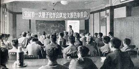 唐敖庆教授在全国第一次量子化学会议论会报告审查会上,报告分子轨道的图形理论。