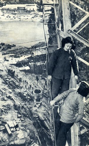 吊车老手—20岁的司机王凤儿(上)和王翠英。