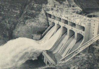 1957年发电的上犹水电站是一座坝内厂房式的水电站,装机容量六万瓩。(1958年)
