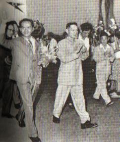 中国—印都尼西亚民航线于1965年1月6日正式通航。广州各界人民在广州国际机场隆重举行开航仪式。图为邝任农(左)在开航仪式上。