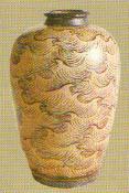 (元)白地铁绘波涛纹瓶,吉州窑烧制。