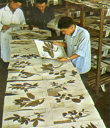 植物标本的鉴定与分料。