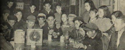 南昌县“八一”公社的社员们聚精会神地收听县委和县人委联合举行的“迅速掀起春耕生产运动的新高潮”的动员广播大会。(1960年)