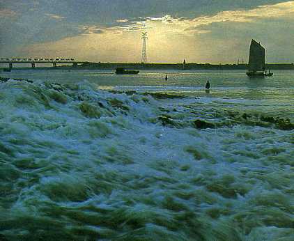 江西南昌的赣江大桥正在紧张施工。这座大桥将把浙赣铁路和南浔铁路联结起来。(1959年)