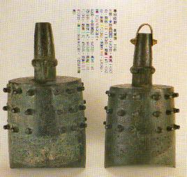春秋晚期 者减钟 台北故宫博物院藏。清乾隆二十六年,江西临江的农民耕地时发现了十一口古钟,由地方官具奏以进,乾隆皇帝定为“周镈钟”。1936年据容庚(见广东省东莞市人物)考证,除两件尚存故宫博物院外,其余九件恐于咸丰九年的英法联军之役与圆明园同遭毁损。现台北故宫博物院确藏有两件者减钟(图示),但却非容庚当年所指的同一码事。