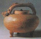 战国 原始瓷龙梁壶。这是制工精致的仿青铜器瓷器,高19.8厘米。1979年贵溪出土。