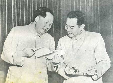1955年8月16日,周恩来出席印尼驻华大使馆庆祝印尼国庆10周年宴会。图为出席宴会的周恩来和莫诺努图(中)大使。