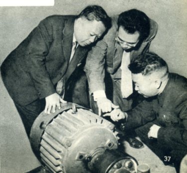 胡森阿团长参观北京西山农业生产合作社的电动抽水机。