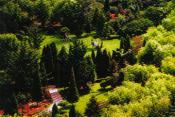 在丹东市中心的锦江山上。园内树木苍翠,百花繁茂,杜鹃花闻名全国。登上山巅锦江亭,举目眺望,丹东全貌和鸭绿江秀姿,尽收眼底。
