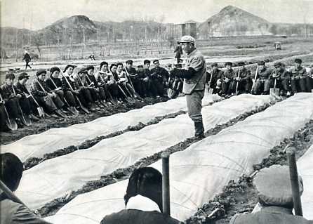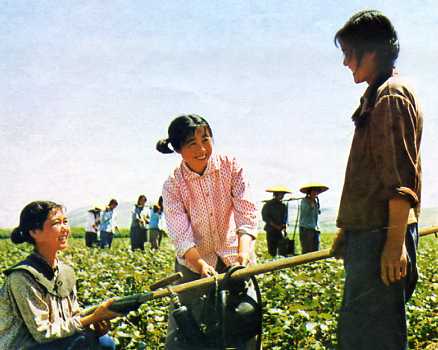 牧医系毕业生苏景华(中)回乡后担任了大队党支部书记。这是她同社员一起劳动。