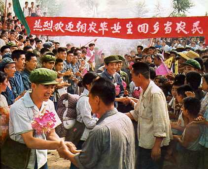 广大贫下中农和干部,热烈欢迎朝农毕业生回乡当农民。