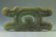 钩云形玉佩饰。长22.5厘米,牛河梁遗址出土。