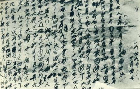 “高玉宝”最初的原稿,不会写的字,作者就用别字、图形和符号来代替。