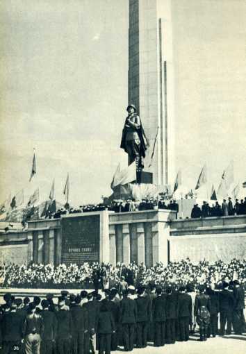 为永志苏联军队解放我国东北的伟大功勋,苏联烈士纪念塔5月7日在旅大落成揭幕。