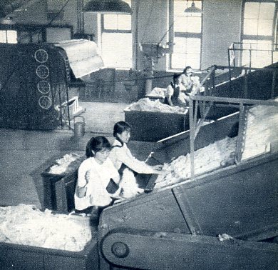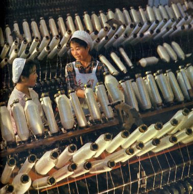 安东化学纤维厂用木材制造人造羊毛,目前每天可以生产一吨。(1958年)