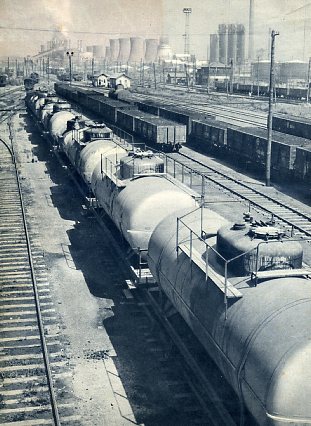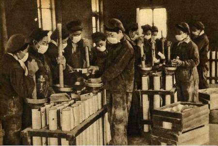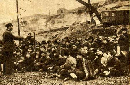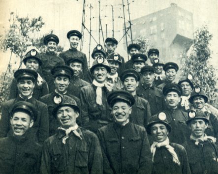史白玉装车小组从前是最落后的组,每人每天只装6、7车。自展开爱国主义生产竞赛后,他们的觉悟提高了,现在平均每人每天装16车(最前者为史白玉)。