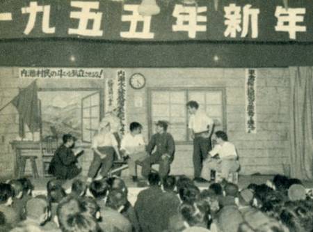 抚顺战争犯罪分子管理所里,1955年新年晚会上演出话剧“内滩村”。